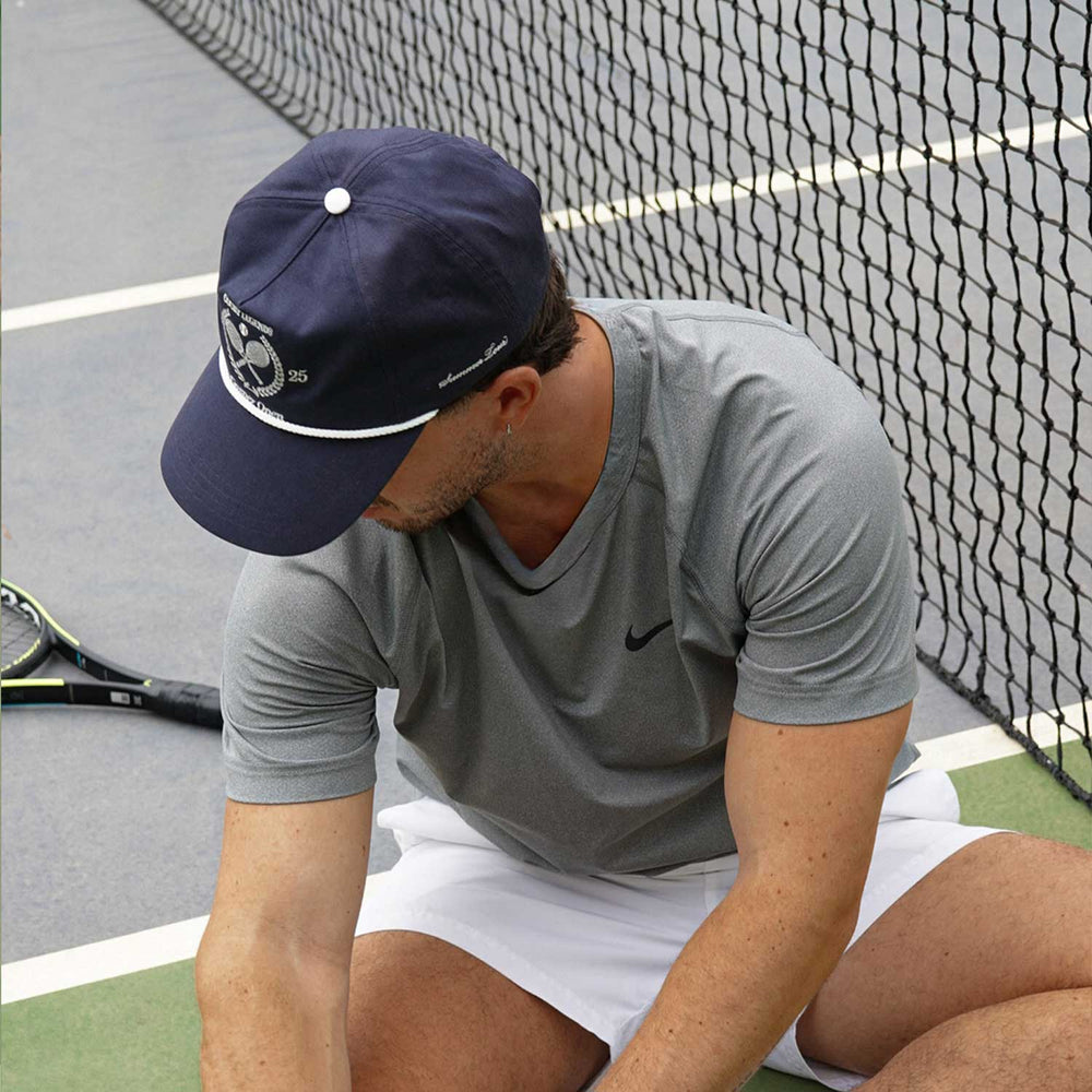 The Court Legends Cap in Navy honors the greats with crossed racquet embroidery and rope detail.