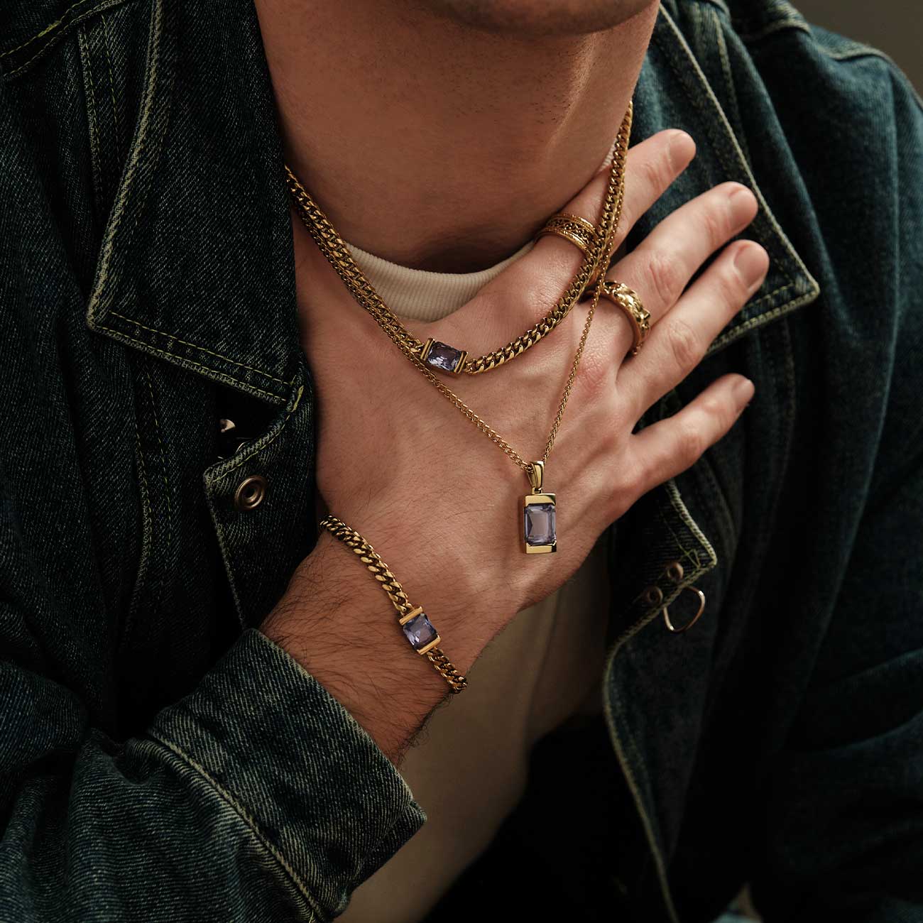Don't do it halfway. We paired our best-selling Chip design with a premium chain to deliver a complete jewelry set that refuses to hide. Bold, unapologetic, and elevated by expertly hand-set stones in a striking Tanzanite, this combination is guaranteed to catch looks.