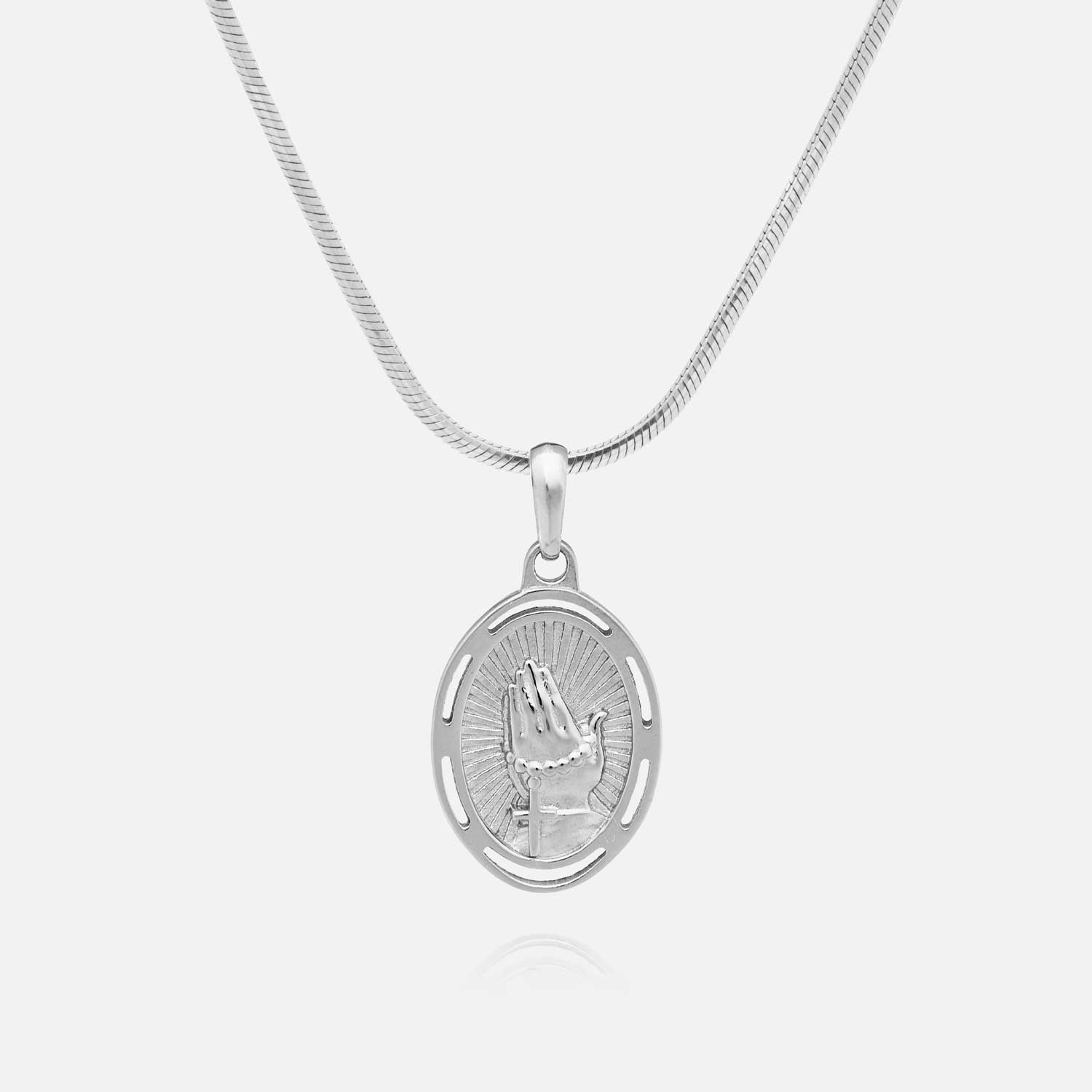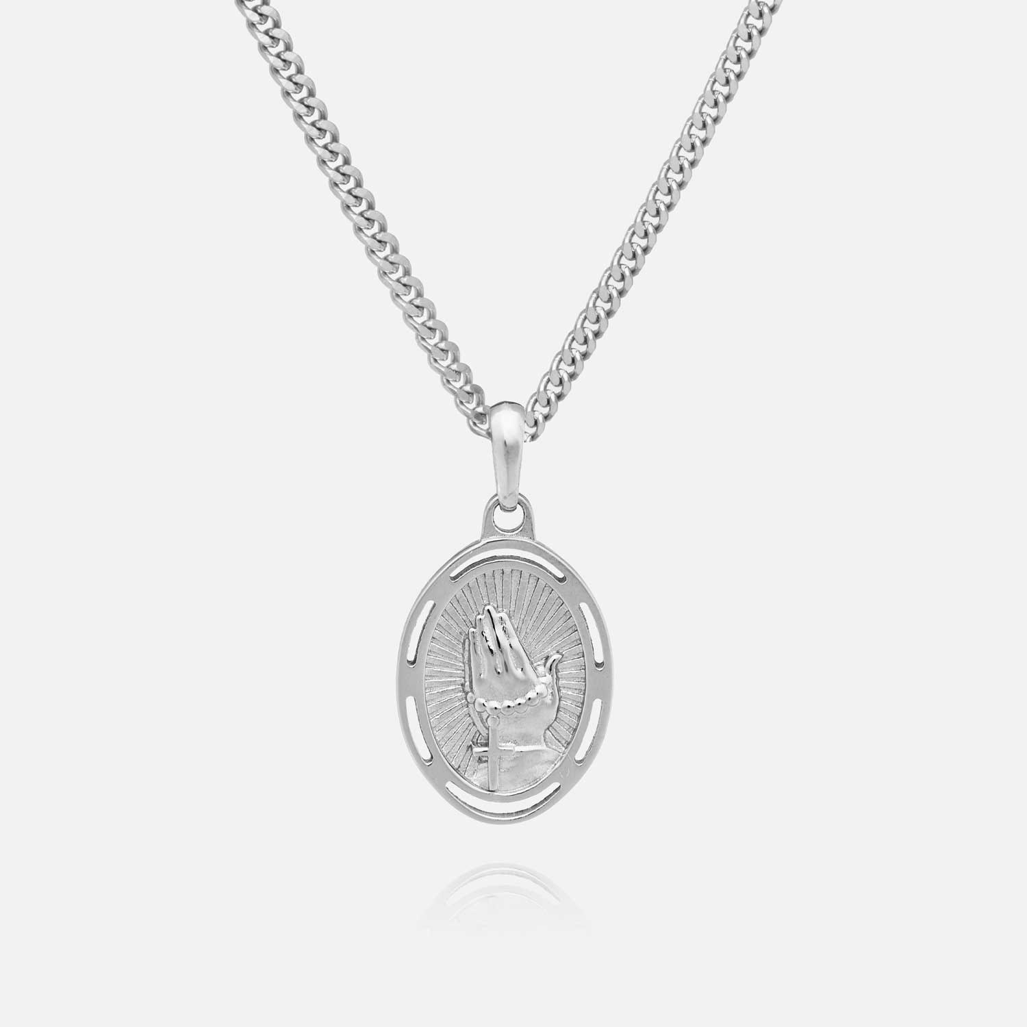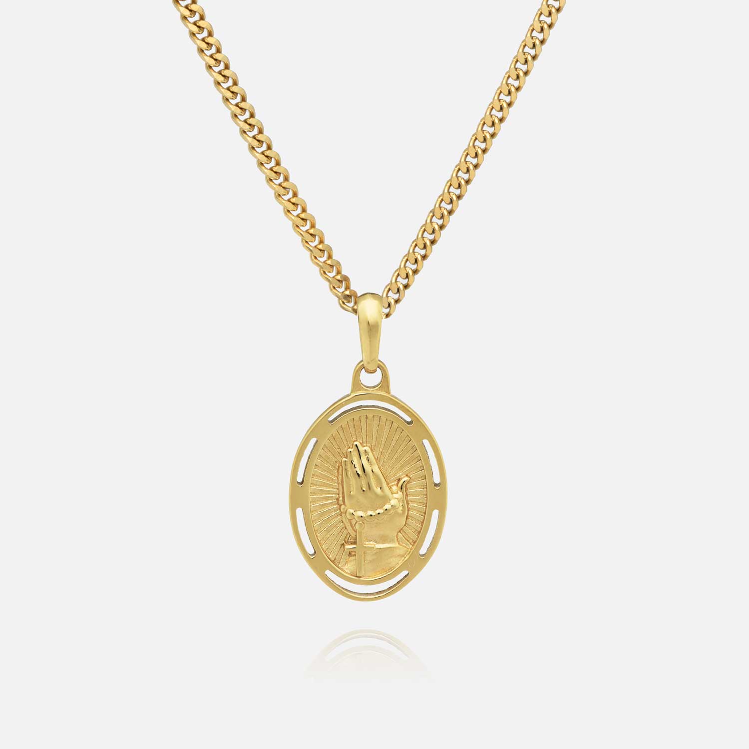 The Grateful Pendant is a timeless symbol of devotion, featuring hands in prayer framed within a bold oval setting. This piece radiates meaning and presence — a daily reminder to carry gratitude and faith with you, wherever life takes you.