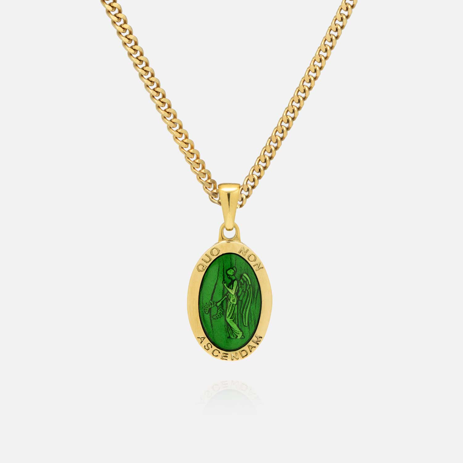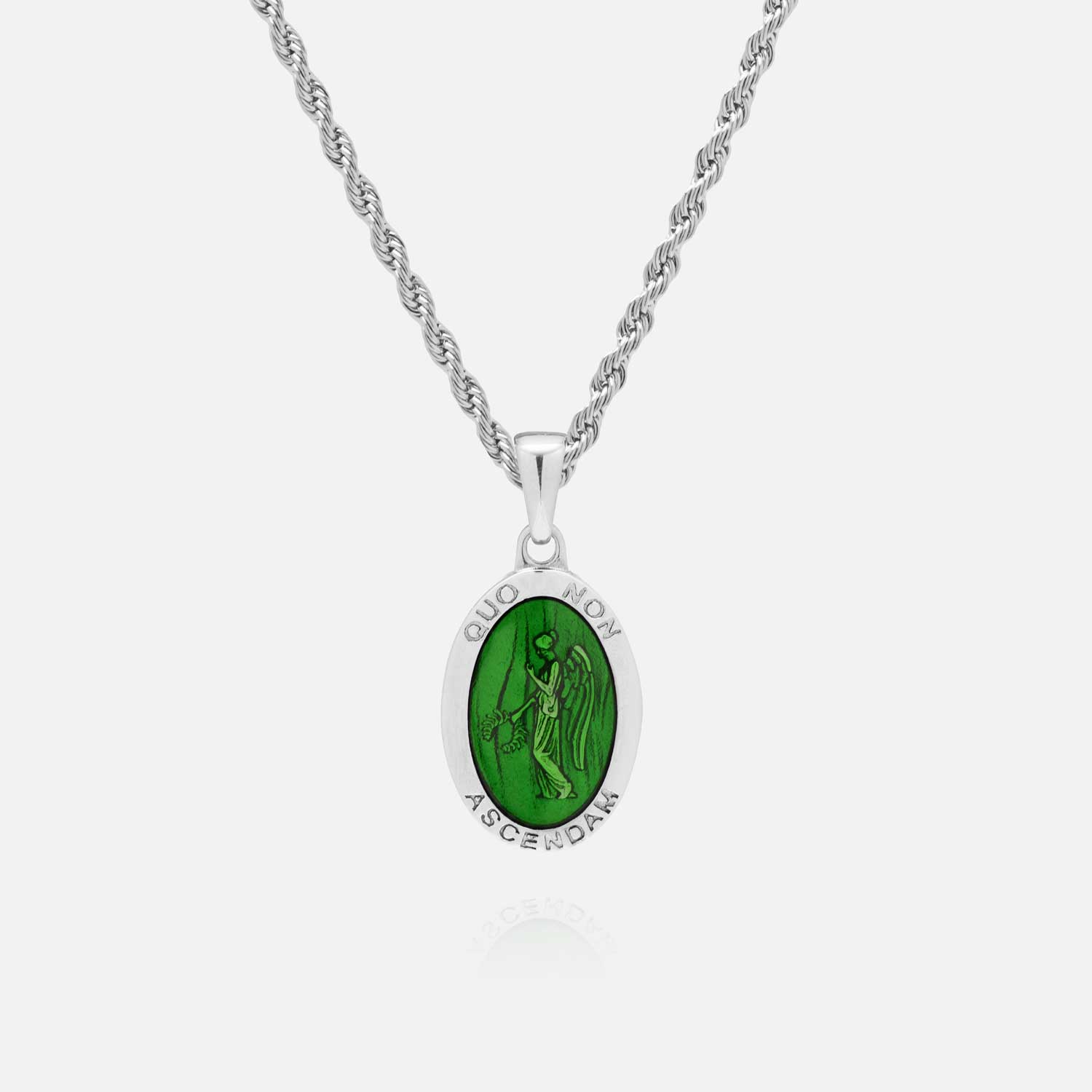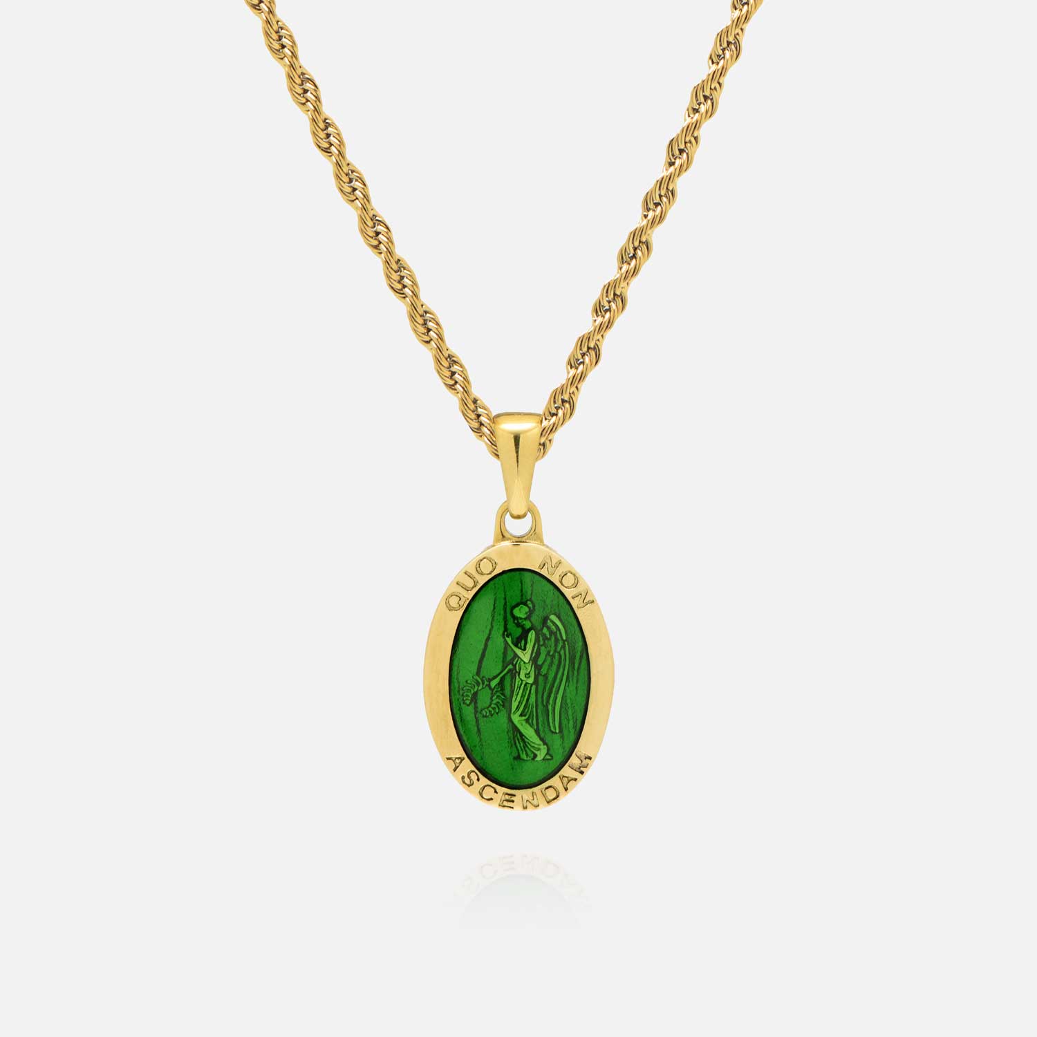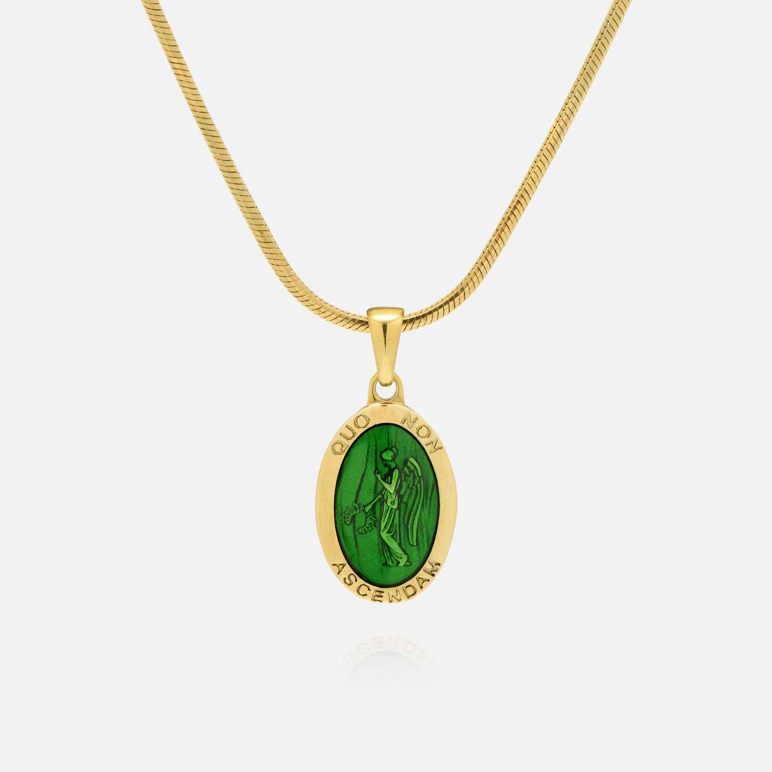 The Nike Pendant is inspired by the Greek goddess of victory, inscribed with “Quo Non Ascendam” — a phrase that challenges: “How high can I rise? There are no limits.”