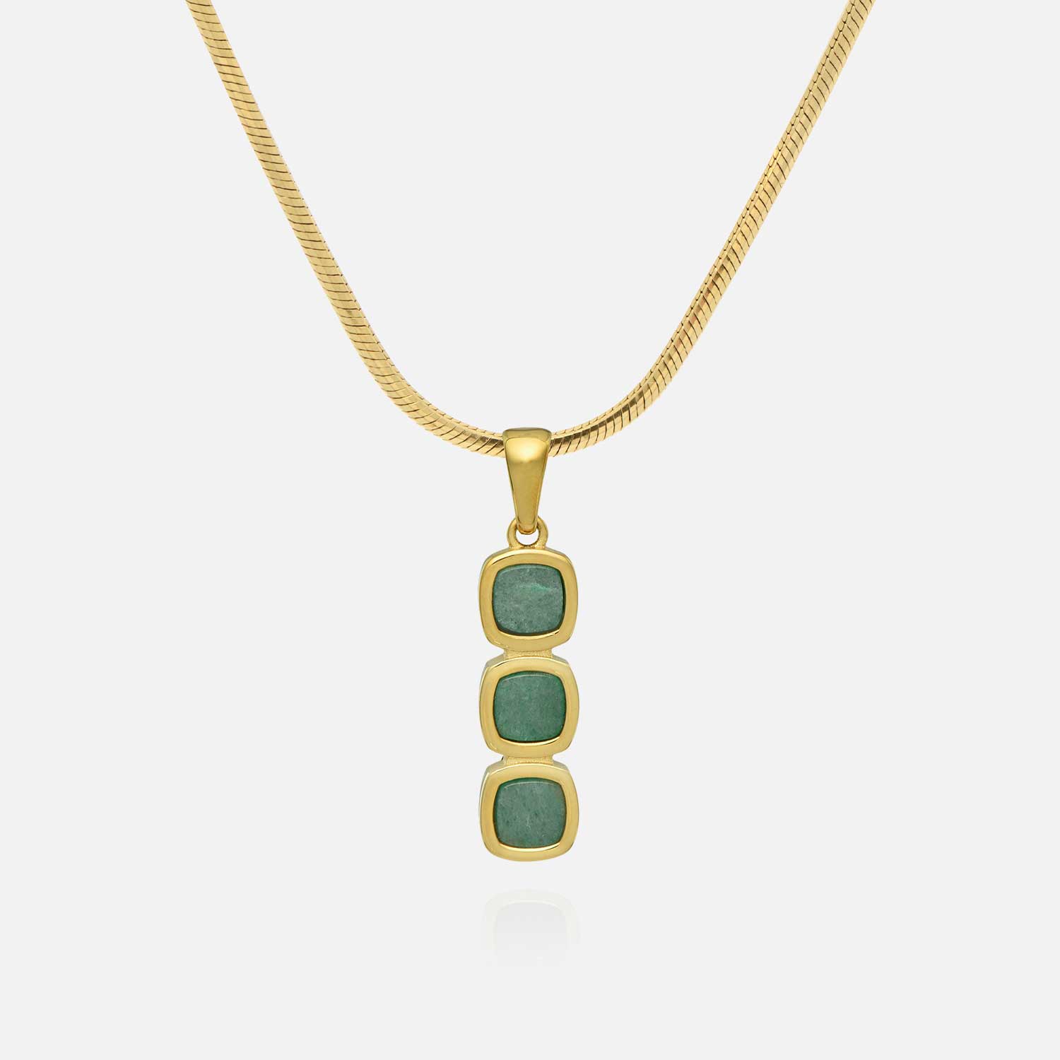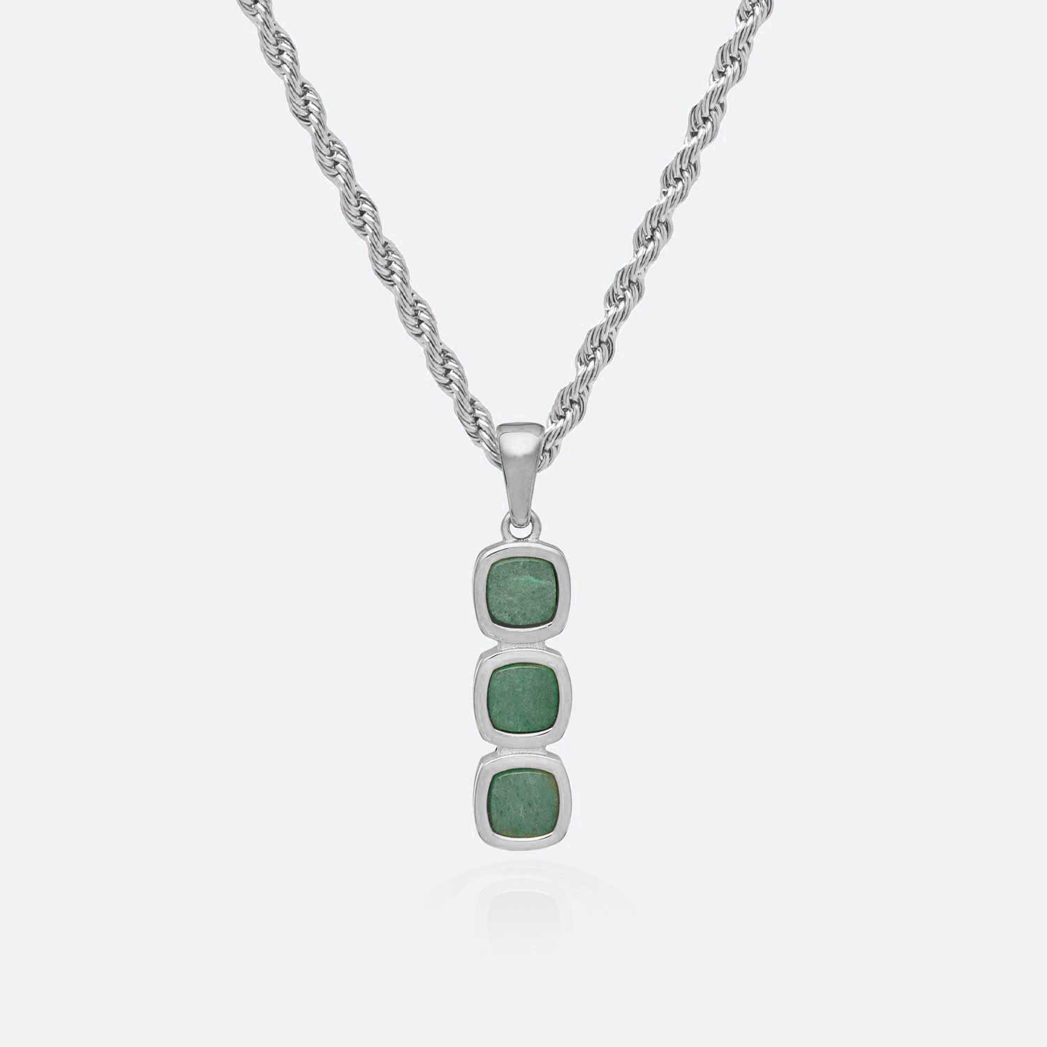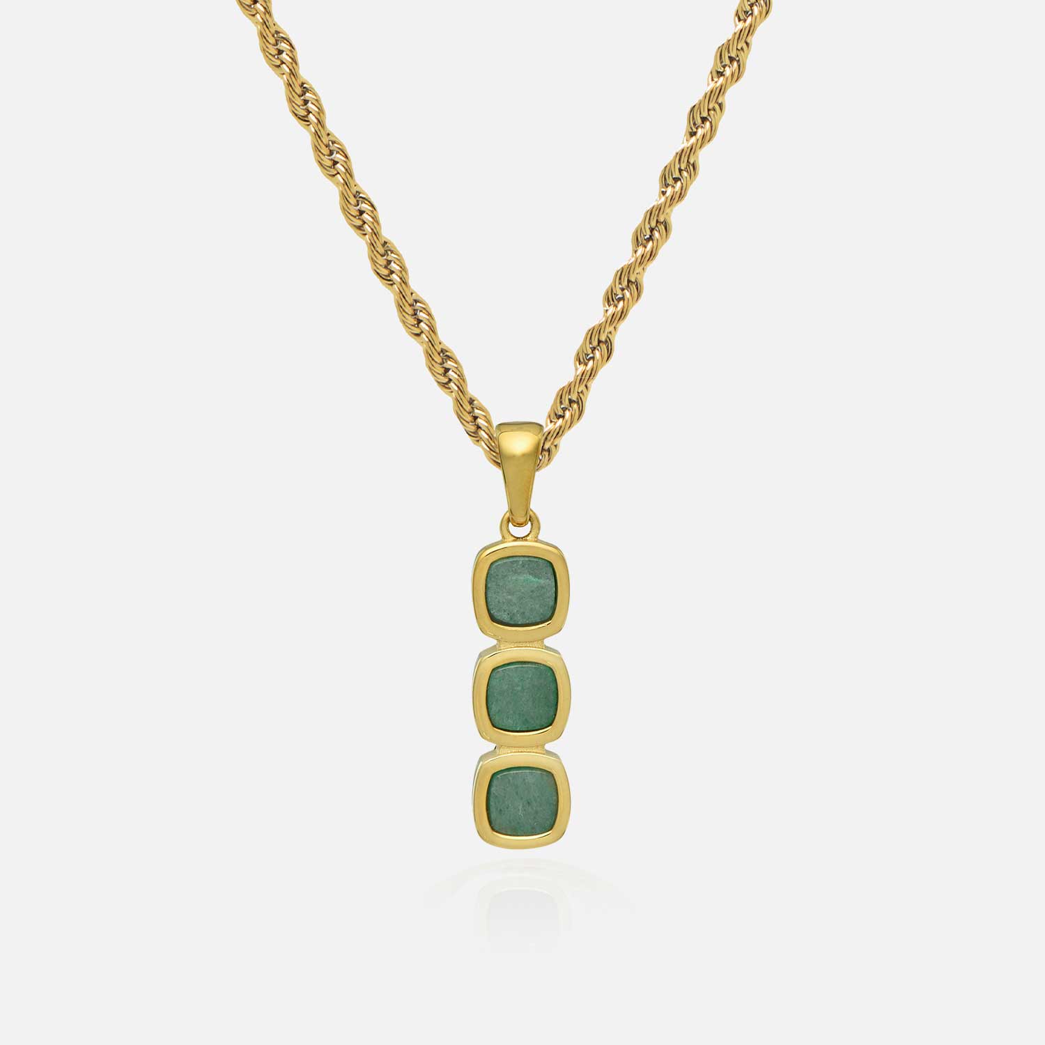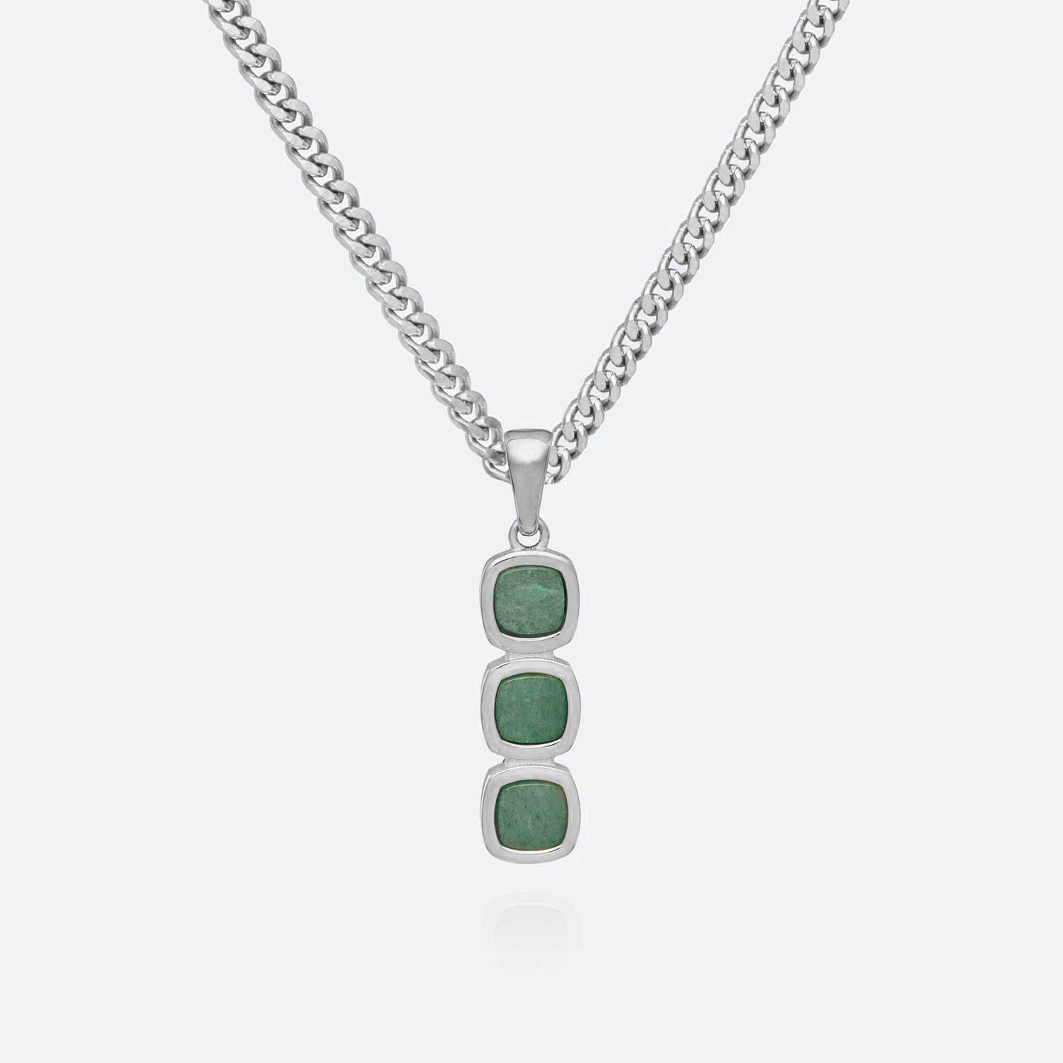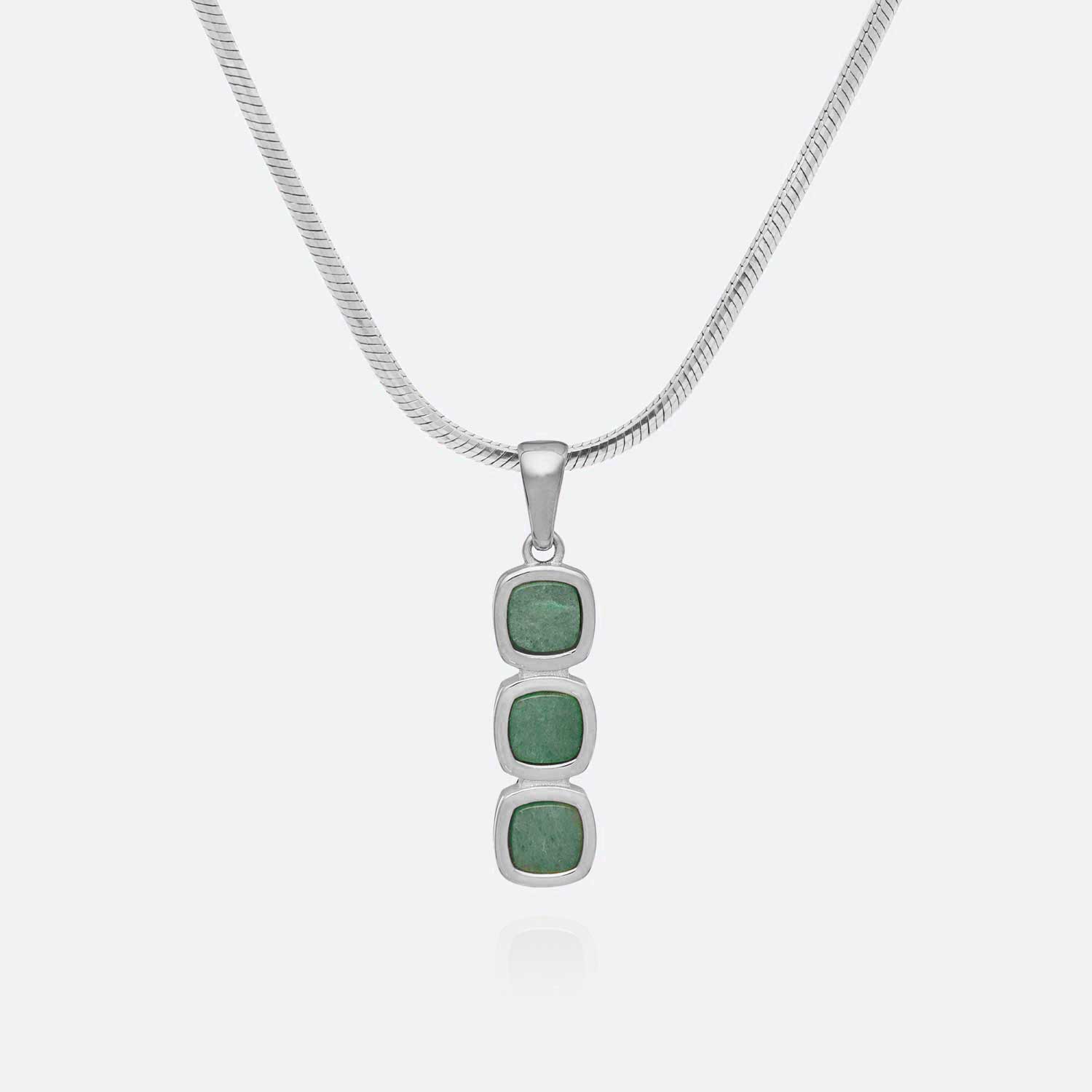 The Totem Aventurine Pendant is defined by its stacked, minimal form and smooth rectangular contours. The design focuses on repetition and proportion, offering a quiet statement with refined edges and symmetry.